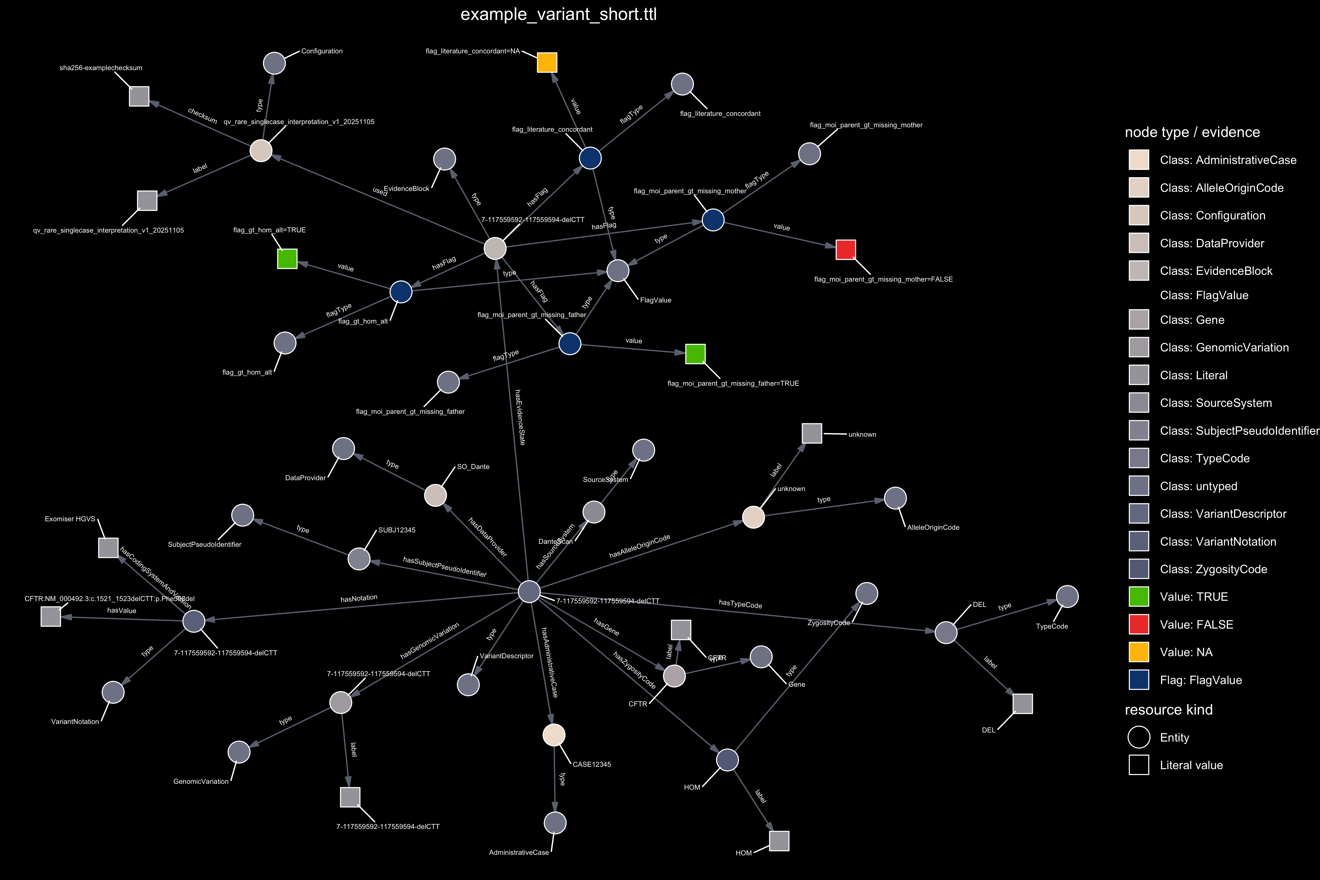 - SPHN compatible classes and relations for variant descriptor, administrative case, and flags like evidence of genotype and mode of inheritance